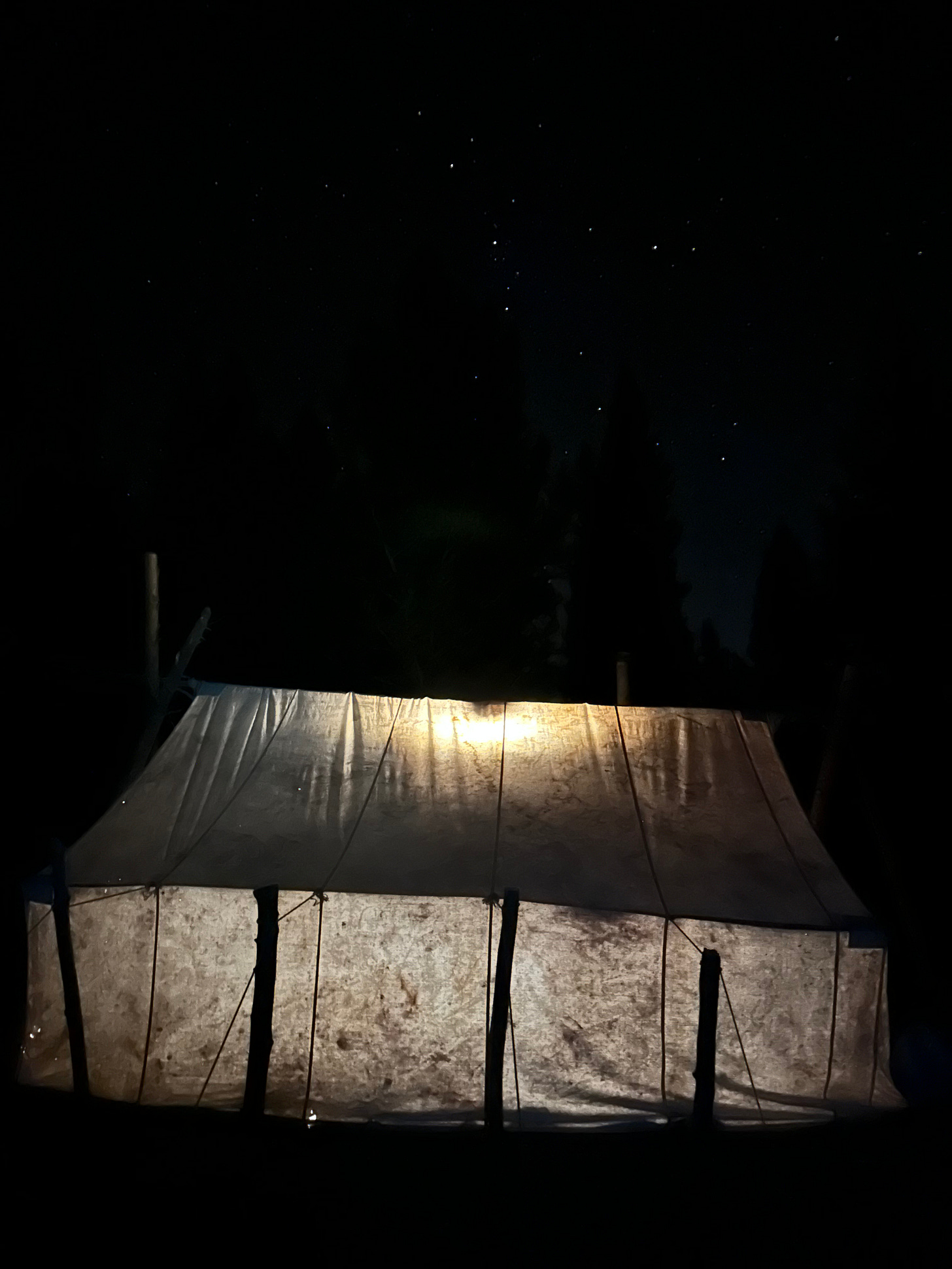 I write to you now on my cot - feet toasting by the crackling wood stove in a canvas tent my Dad and I are calling home for the week. Up 9,000+ feet in elevation above the town of Eagle, we are on our annual elk hunt.